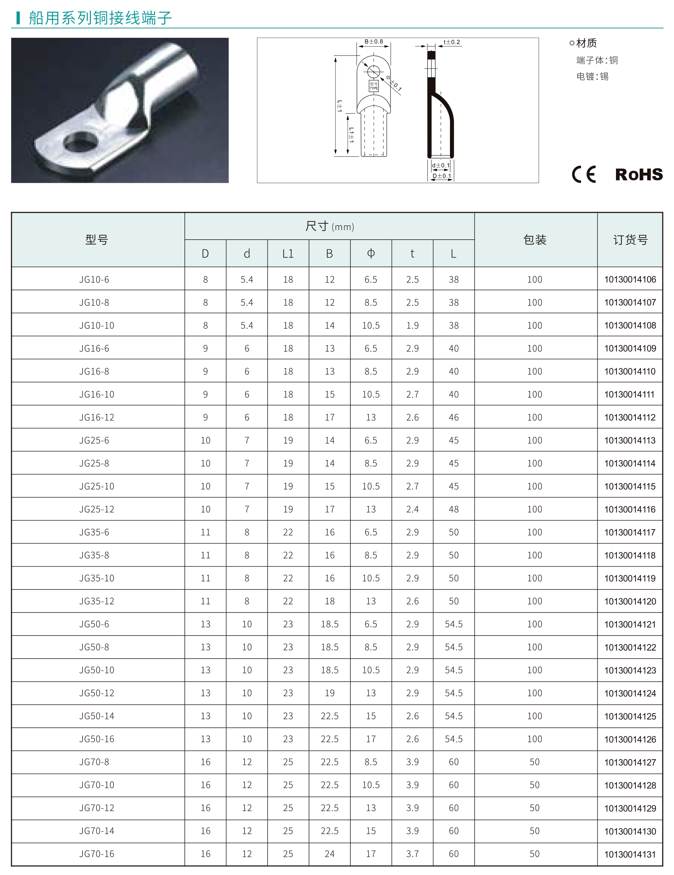 德玛JG系列船用系列铜接线端子采用优质紫铜设计,导电性能高,表面电镀锡处理,抗腐蚀性强,人性化设计,产品规格齐全,接线必备。